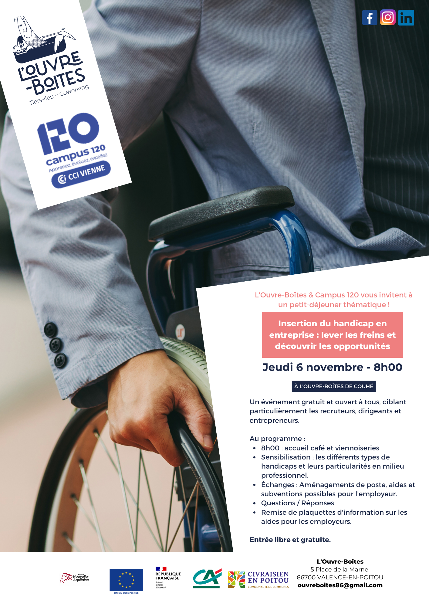 L'Ouvre-Boîtes et l'organisme Campus 120 sont heureux de vous convier à un événement commun et privilégié sur une thématique essentielle pour l'inclusion et l'économie locale : l'insertion professionnelle des personnes en situation de handicap.