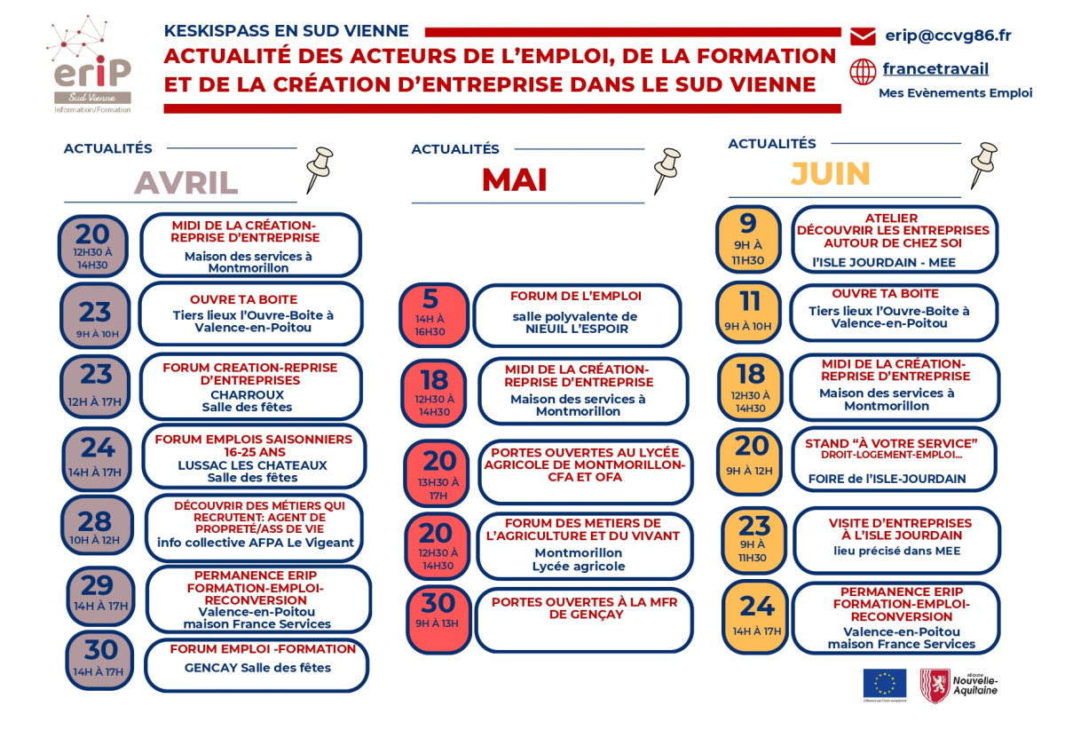 - 24 juin - 14h à 17h "Permance ERIP Formation Emploi Reconversion" à Valence-en-Poitou